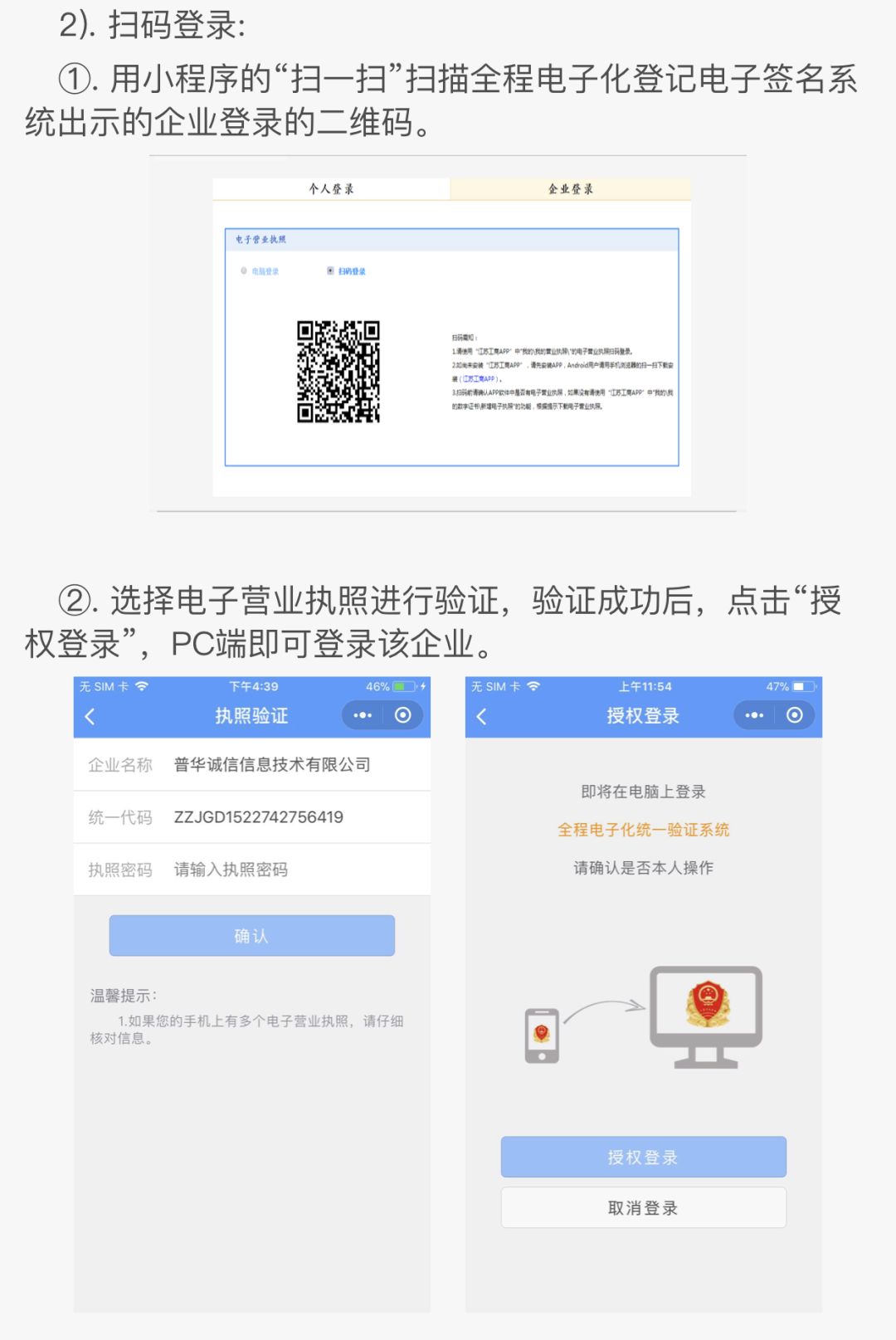 用到扫一扫功能对主要有:pc端扫码登陆,验证电子营业执照,打印电子营业执照等三个功能。