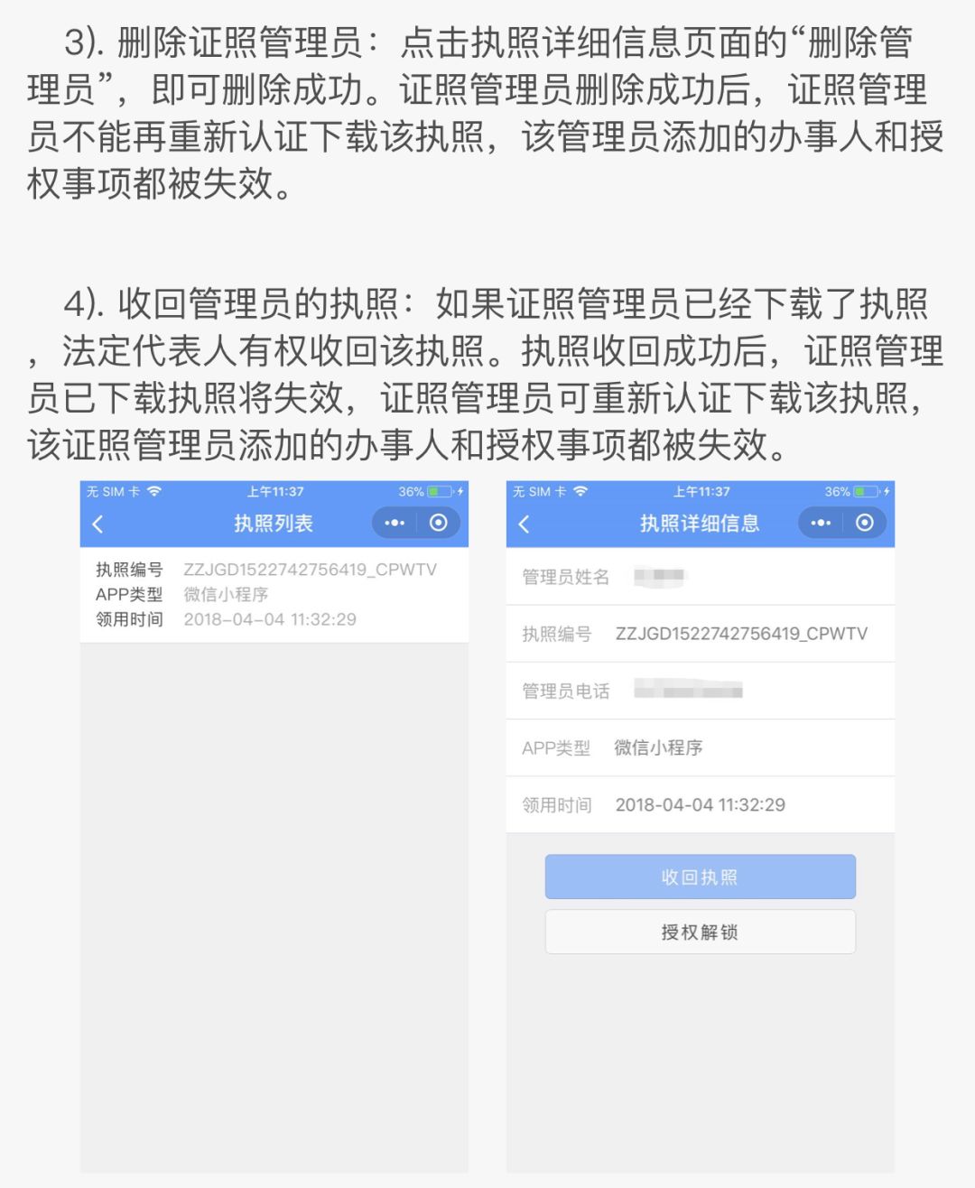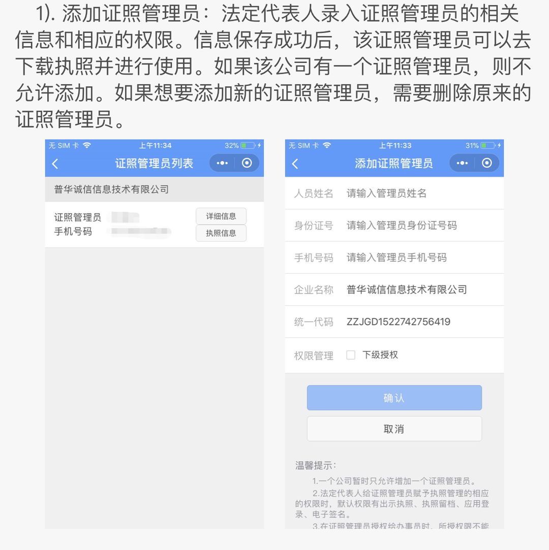 证照管理员:被法定代表人授权保管,持有,使用电子执照的人员。