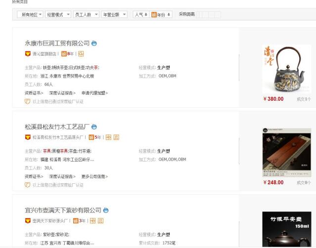首先进入1688的首页,在货源位置选择供应商,然后输入你想代理的产品类目的核心词,然后会自动出现该类目的关键词里面,自己去选择一个自己认为匹配度最大最适合自己的就可以了,然后会出来很多商家,而我选择是的茶壶,我们也需要做一下筛选!