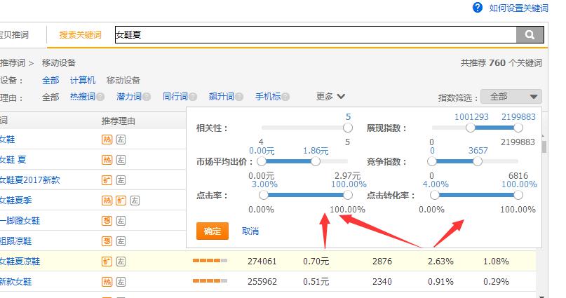 如果大家只是想要找移动端的关键词,就可以直接点击选择移动设备,只看关键词的移动端数据。